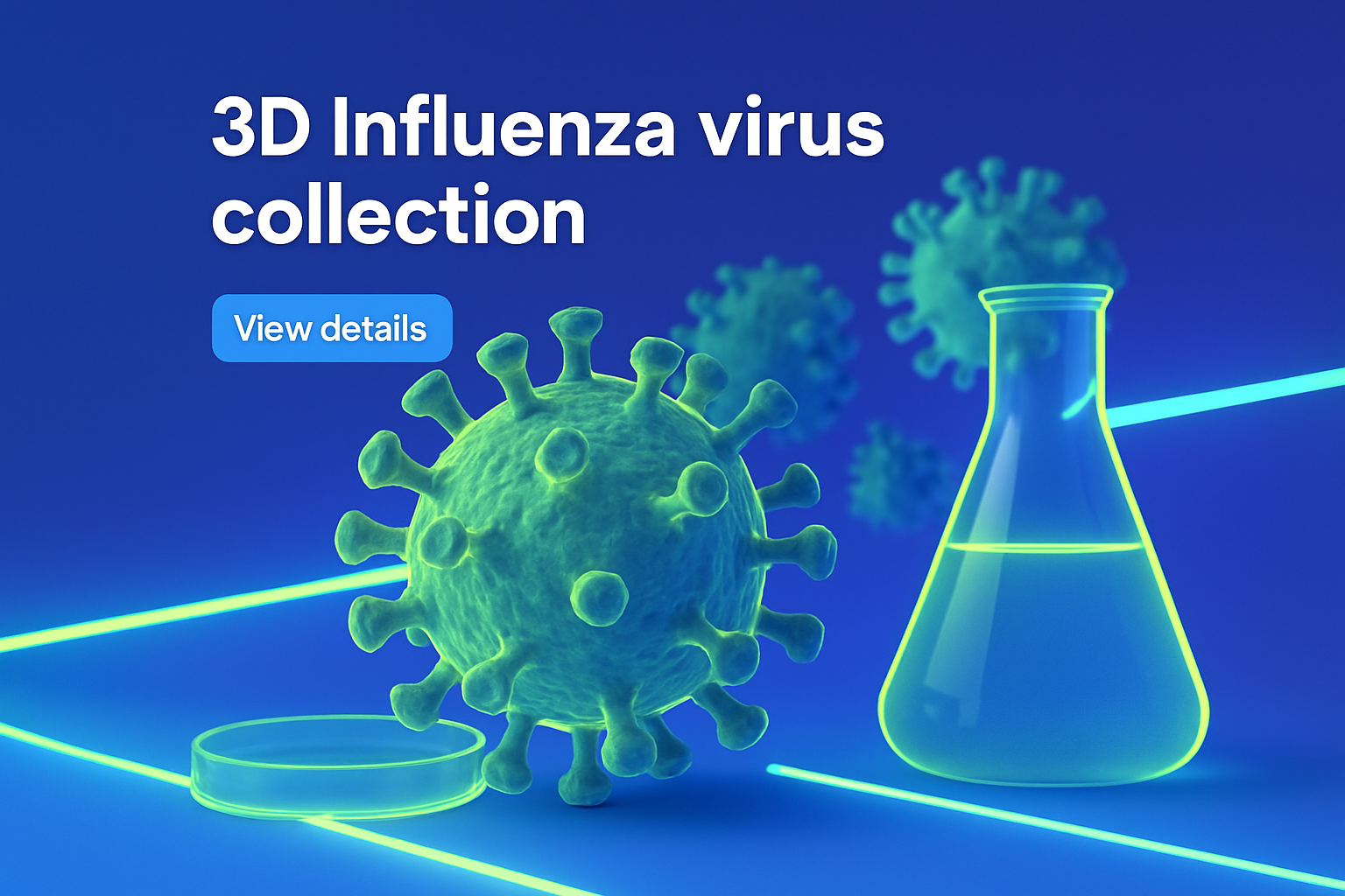 3D Influenza Virus Collection with Neon Elements