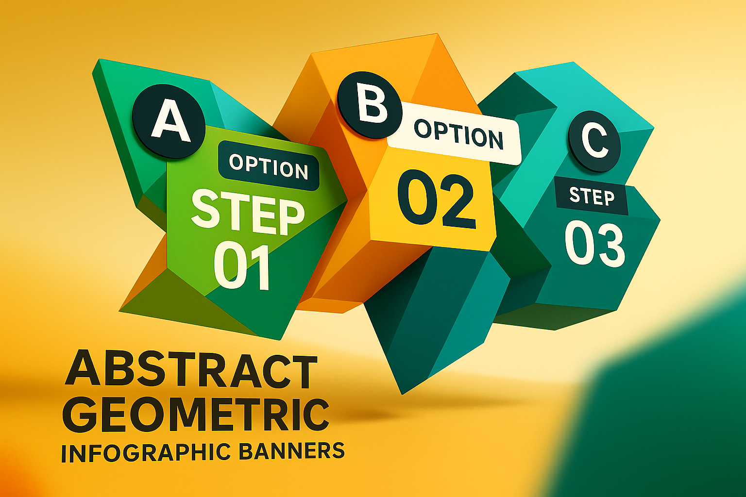 /Collection: /by davooda/Type: PNG/Vibrant infographic banners featuring abstract geometric shapes and numbers, ideal for step-by-step guides or presentations. Perfect for engaging visual content.