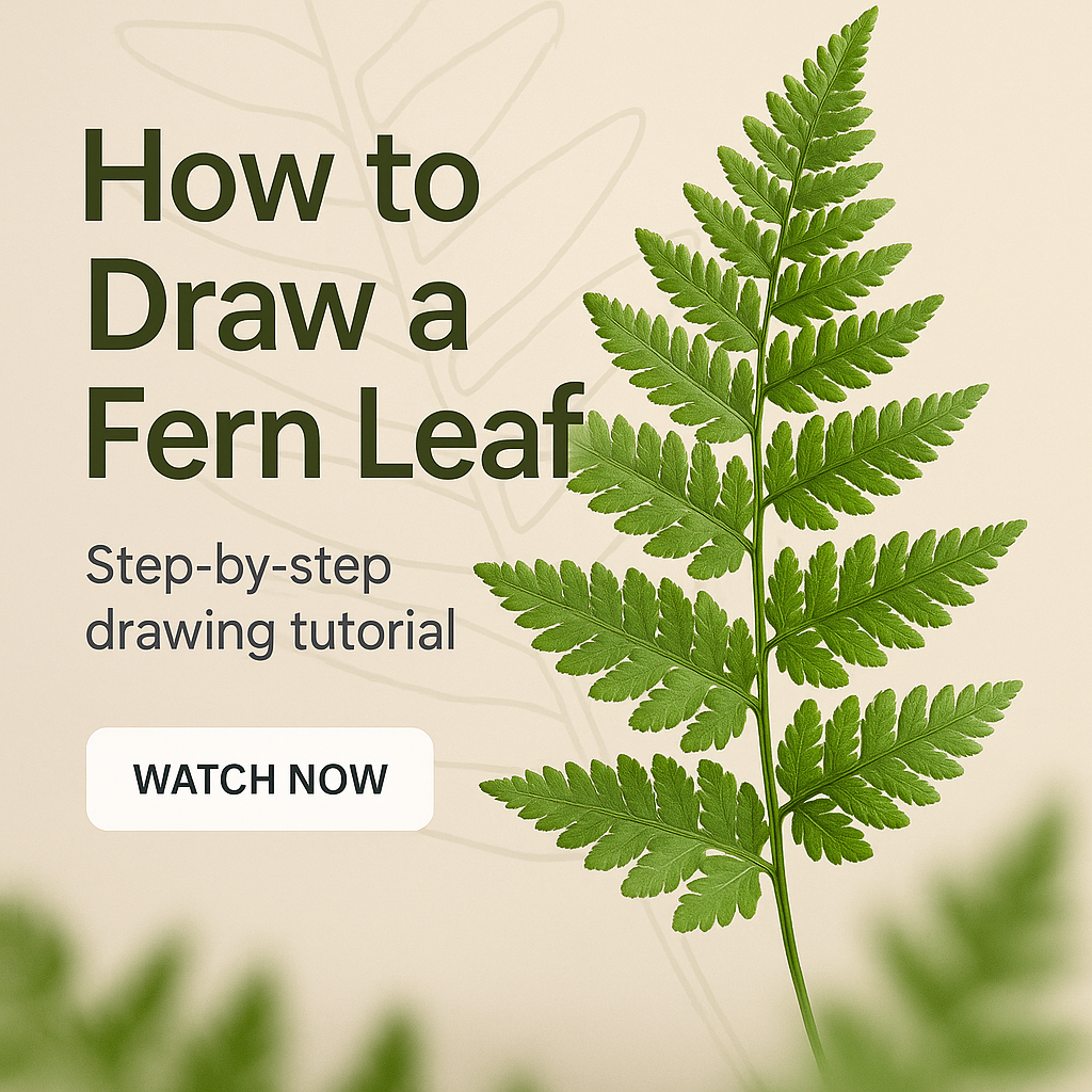 A visually appealing graphic promoting a tutorial on drawing fern leaves, featuring a detailed fern illustration and modern design elements suitable for art education.