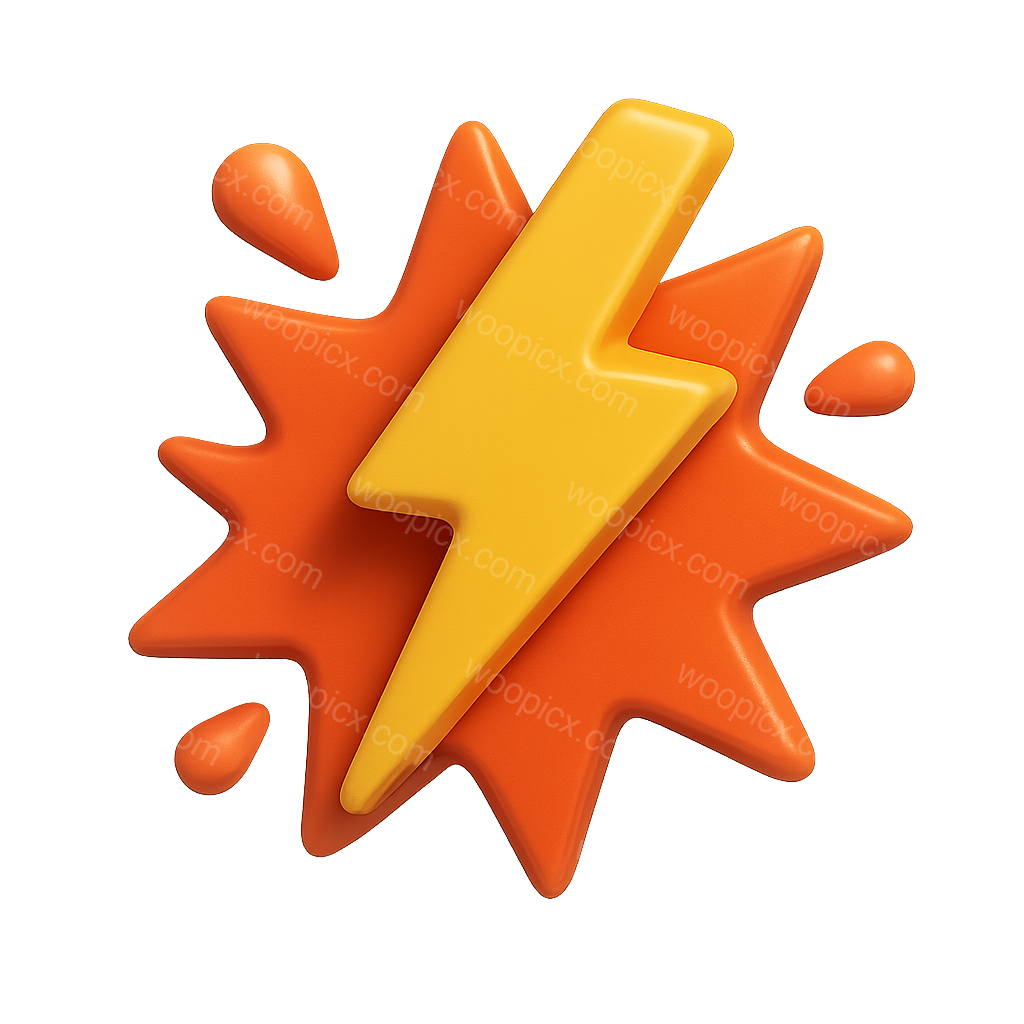 /Premium/Collection: /by davooda/Type: PNG/A vibrant 3D icon featuring a yellow lightning bolt set against an explosive orange background, designed in an isometric style with a transparent backdrop.