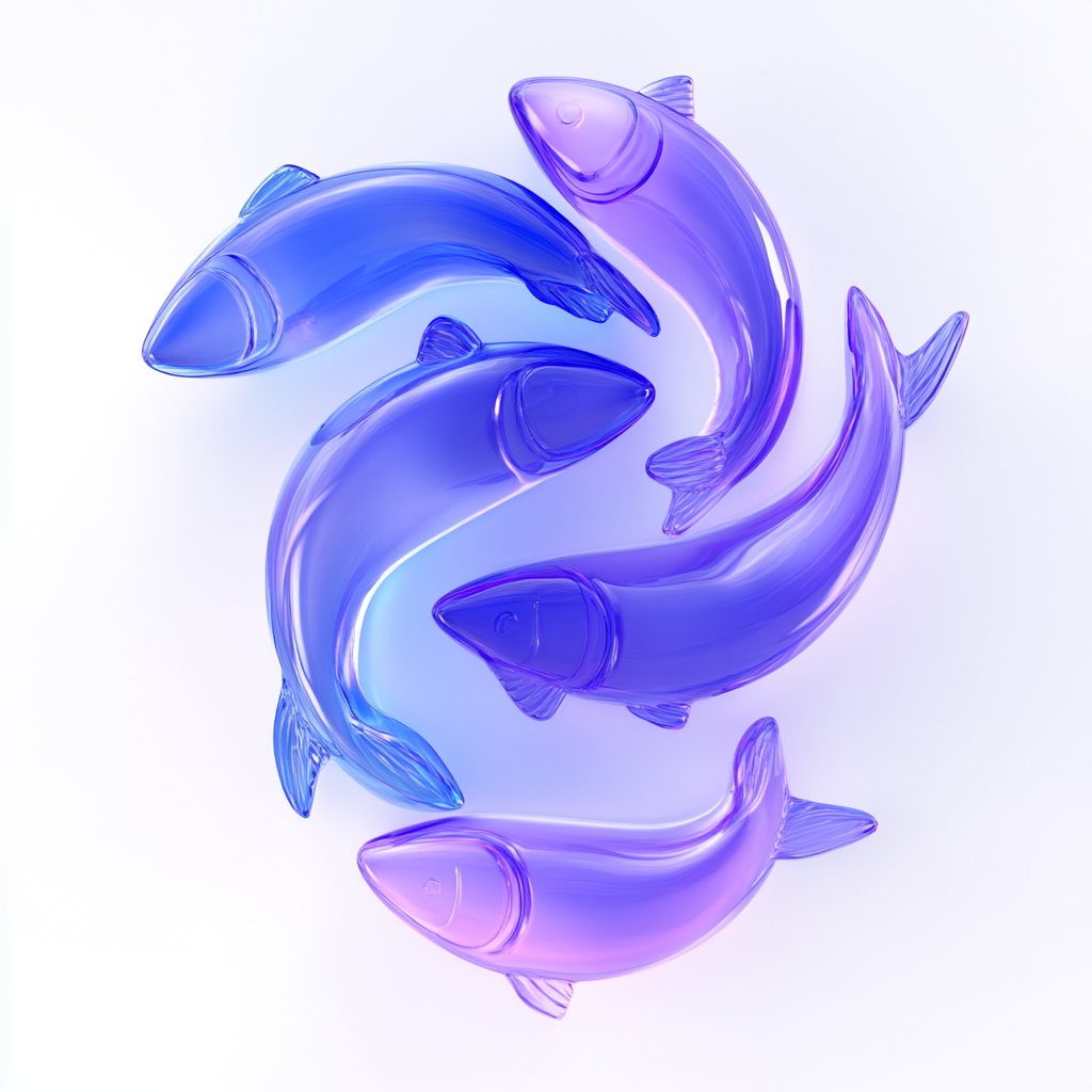 A visually appealing graphic featuring stylized fish in varying shades of purple, suitable for creative and artistic applications. Ideal for branding, illustrations, or product designs.