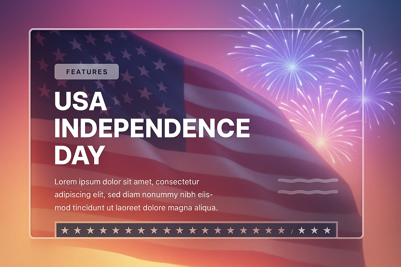 /Collection: /by davooda/Type: PNG/A vibrant display of fireworks illuminates an American flag backdrop, symbolizing celebration. The design features a modern gradient and includes a text block highlighting Independence Day.