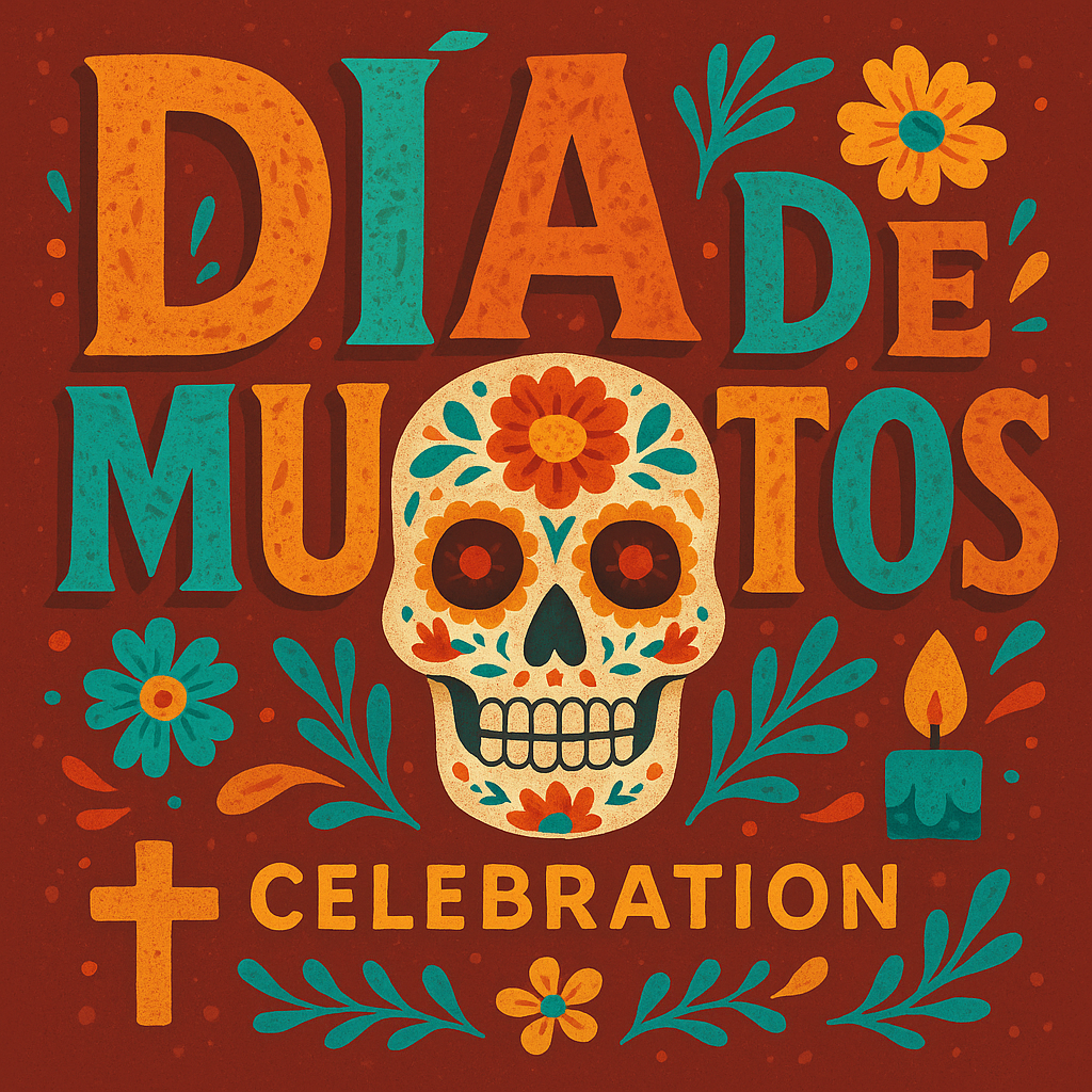 Colorful Dia de Muertos Celebration Graphic with Floral Elements