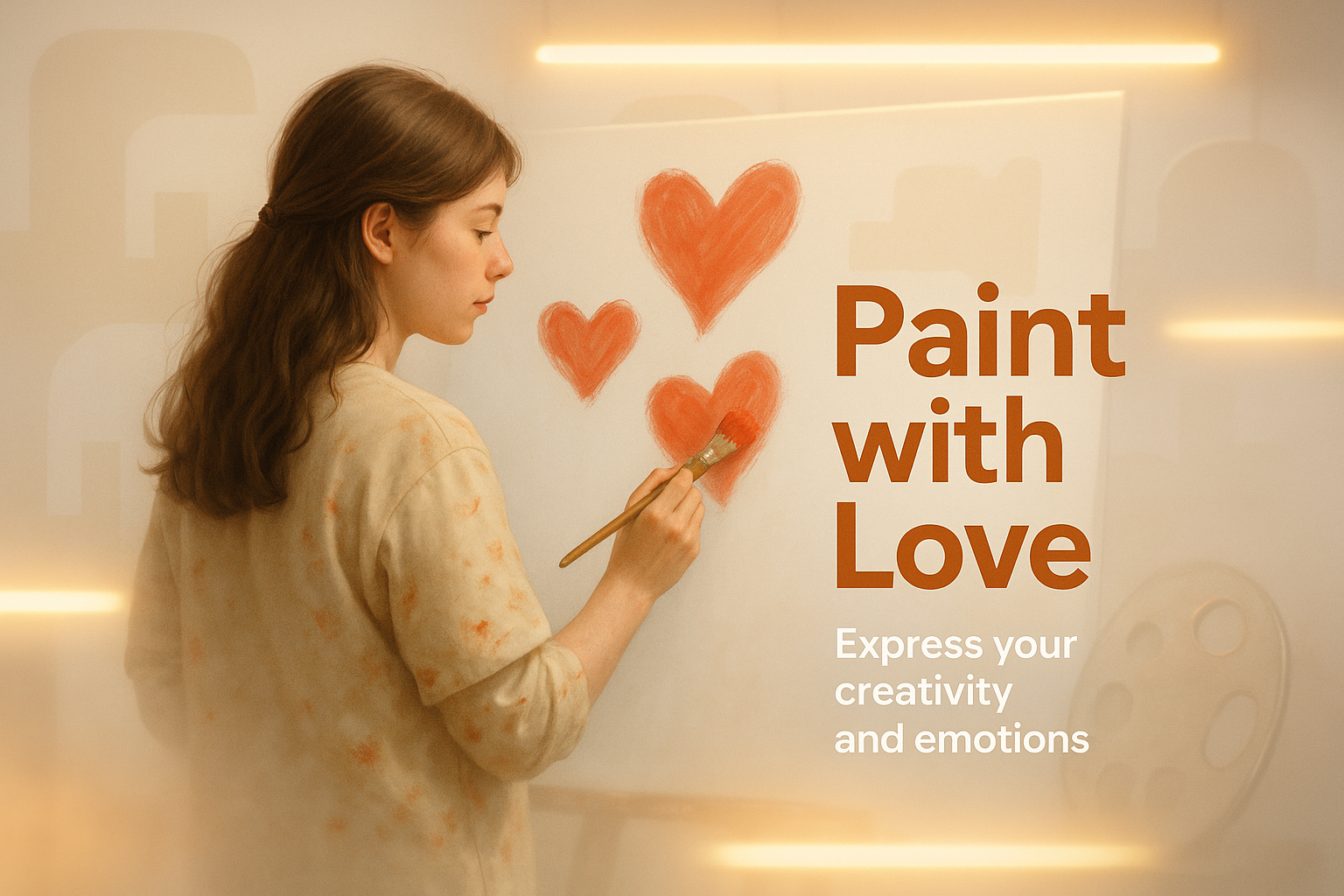 /Collection: /by davooda/Type: PNG/A visually appealing promotional image showcasing a young artist painting hearts on a canvas. The warm tones and soft focus create an inviting atmosphere, ideal for art workshops or creative campaigns.