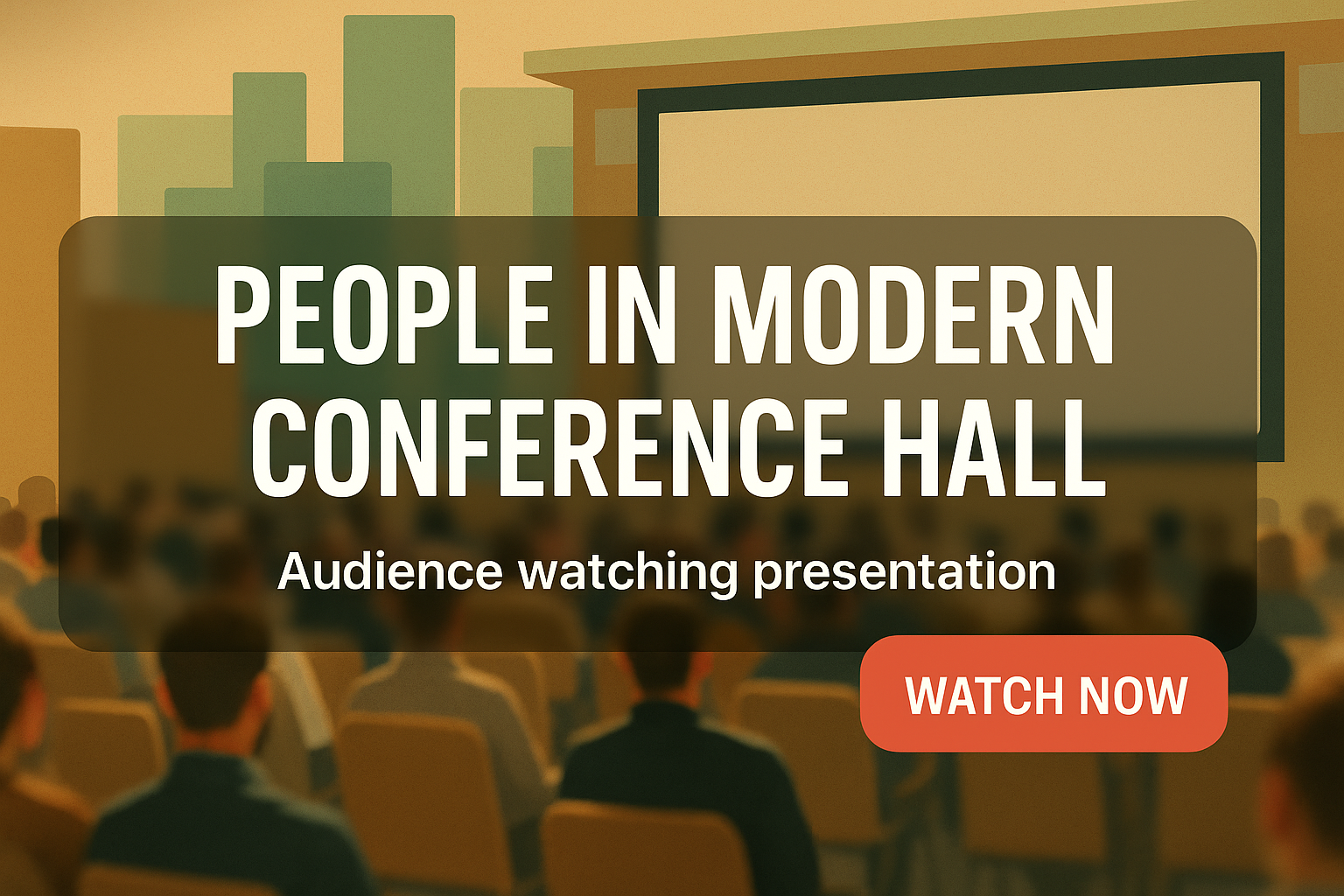 /Collection: /by davooda/Type: PNG/Illustrative image depicting an audience in a contemporary conference hall engaged in a presentation, ideal for event promotion and professional settings.