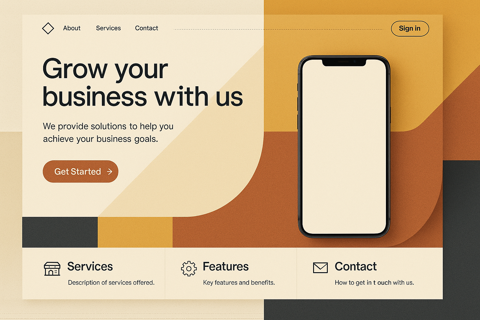 /Collection: /by davooda/Type: PNG/A sleek landing page design featuring geometric shapes, a clean layout, and a prominent call-to-action button. The minimalist style emphasizes clarity and balance.