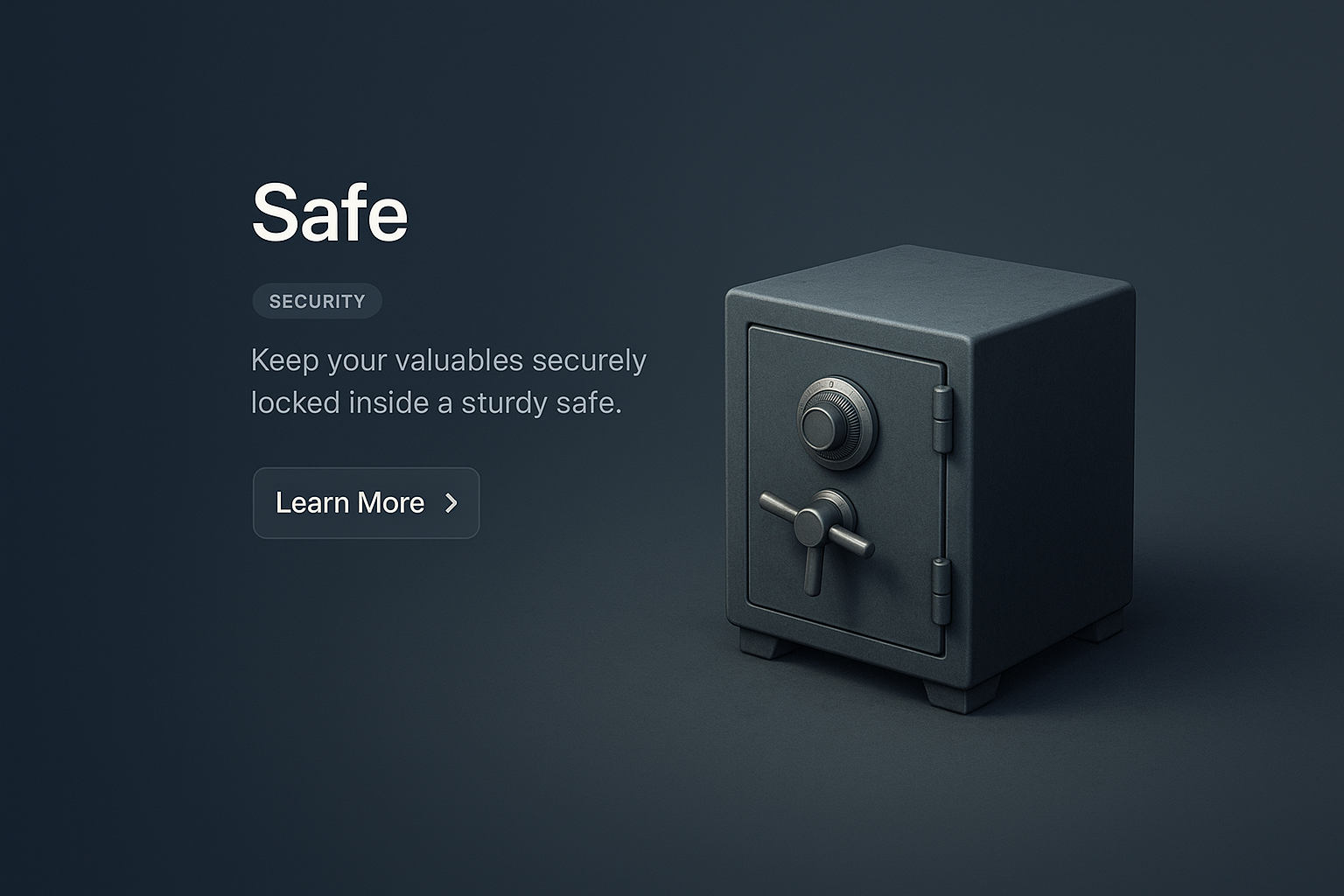 A detailed 3D illustration of a sturdy safe against a dark gradient background. The scene includes text elements promoting security, with a clean design and a clear call-to-action button.