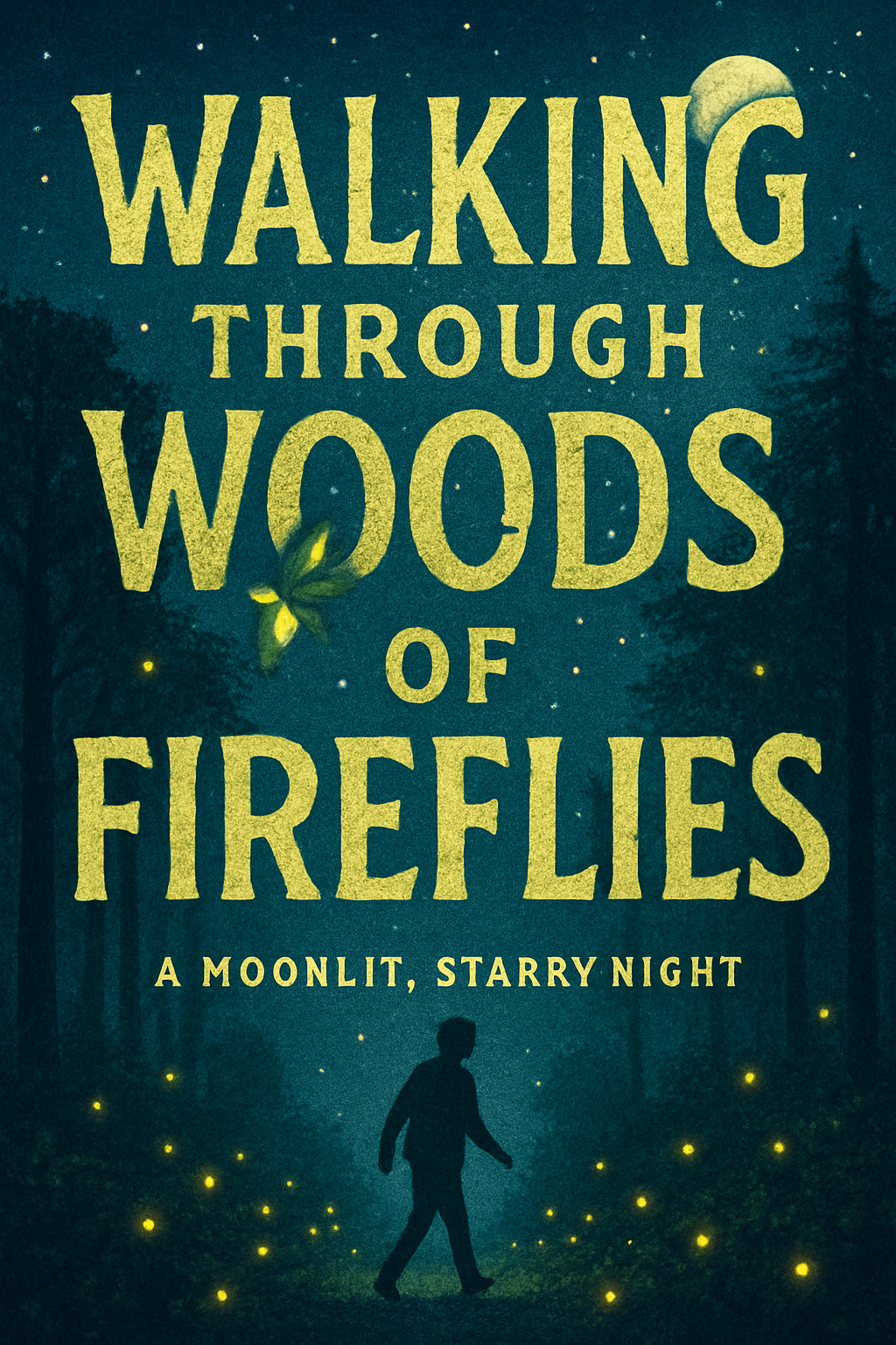 A captivating illustration depicting a serene nighttime forest scene filled with glowing fireflies. The design evokes a sense of wonder and adventure, ideal for book covers or storytelling promotions.