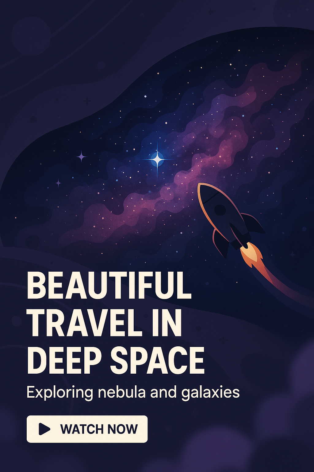 Space Exploration Promotional Graphic Featuring a Rocket and Nebula