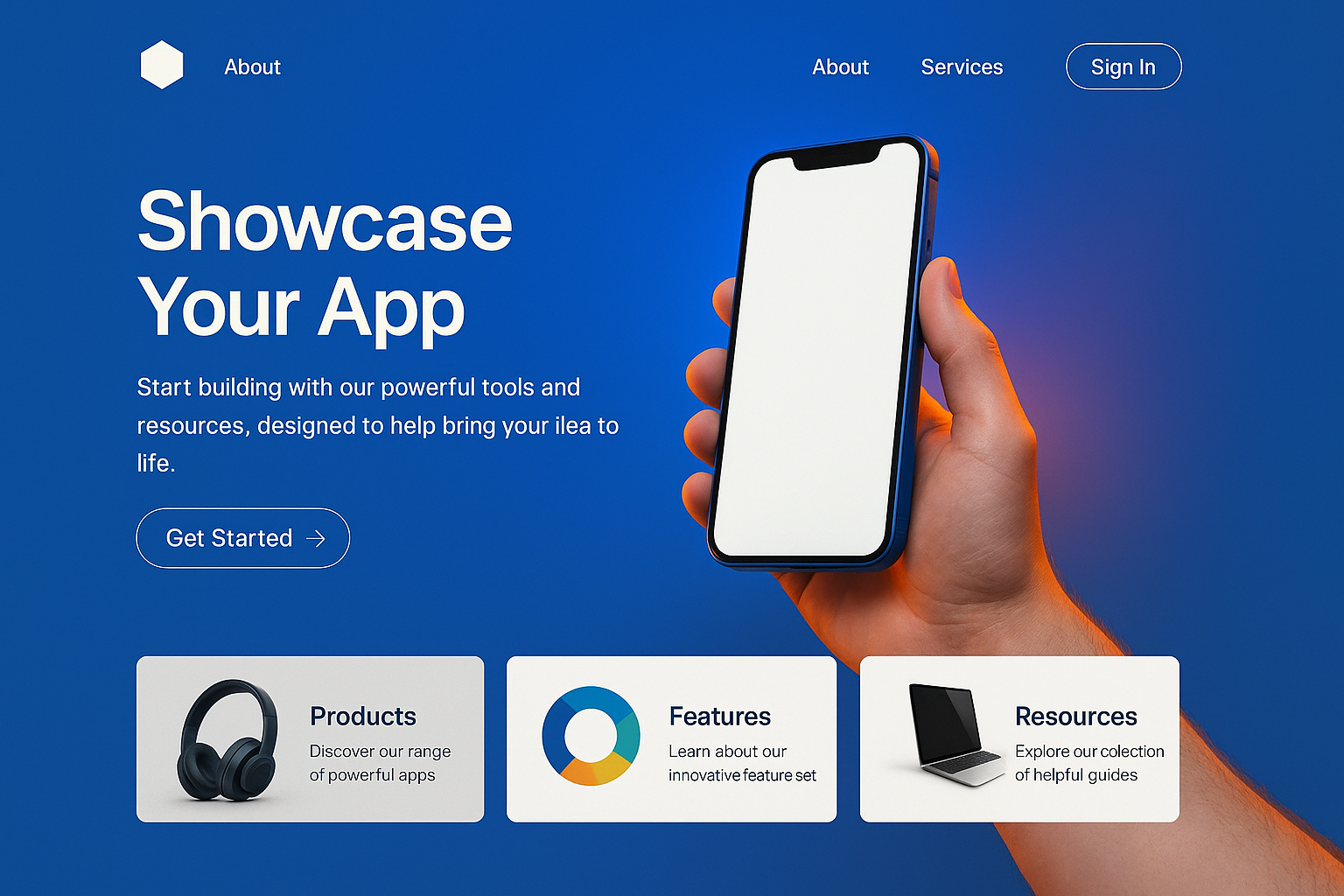 Stylized Landing Page Featuring a Smartphone and Call to Action