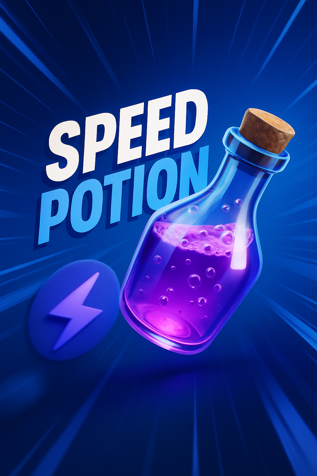 /Collection: /by davooda/Type: PNG/A vibrant 3D illustration of a speed potion in a bottle, featuring dynamic rays emanating from the center. The background transitions from a gradient to a solid color, enhancing the potion's energetic vibe.