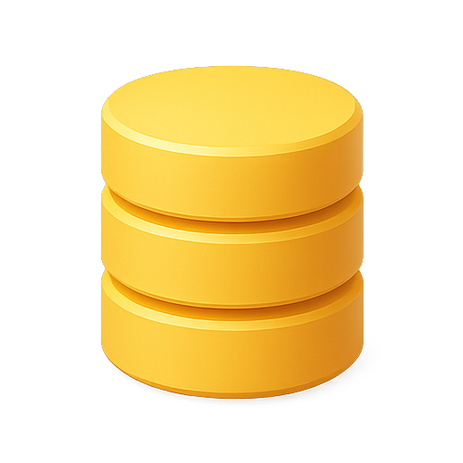 A sleek 3D illustration featuring stacked yellow database icons, representing data storage and management. Ideal for tech-related projects and digital applications.