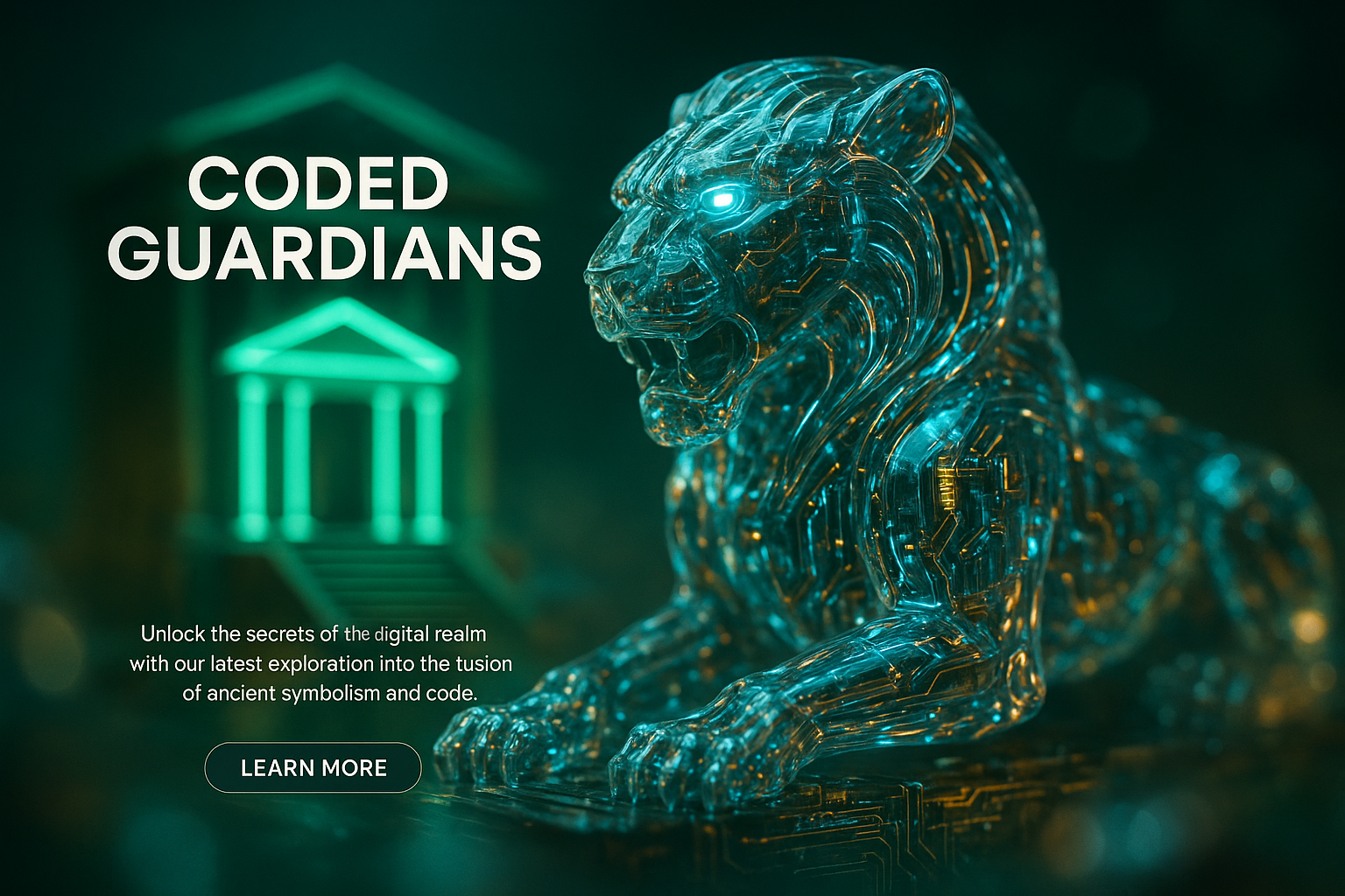 Temple Guarded by Holographic Lions of Code in a Mesmerizing Scene