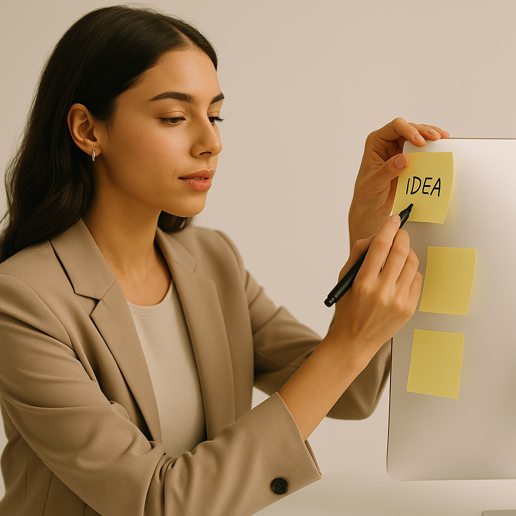 Stylish Minimalist Video of a Woman Writing Ideas on Sticky Notes