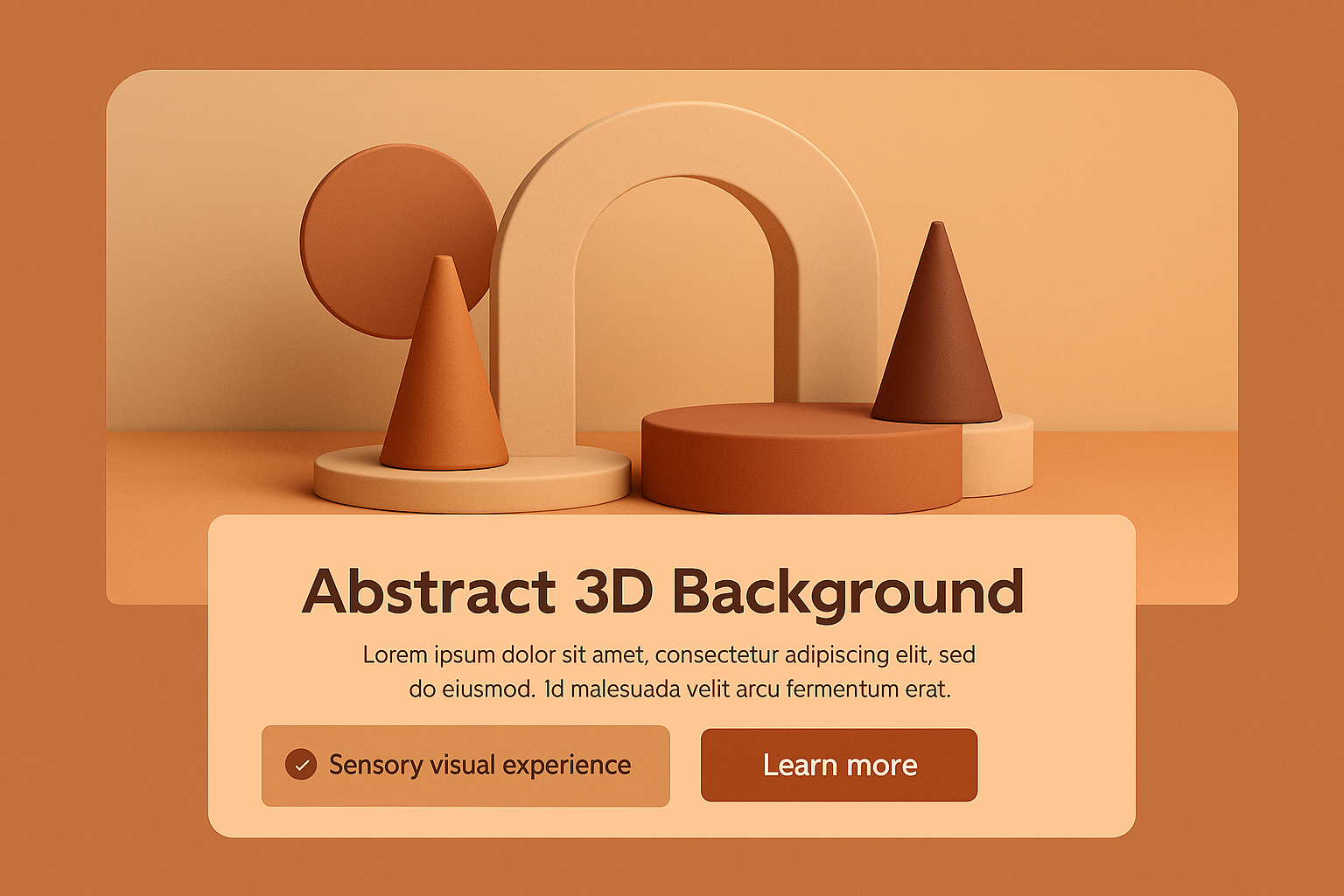 /Collection: /by davooda/Type: PNG/A visually appealing abstract 3D background featuring geometric shapes in warm tones, ideal for a boho-style landing page. The design combines smooth gradients and minimal details.