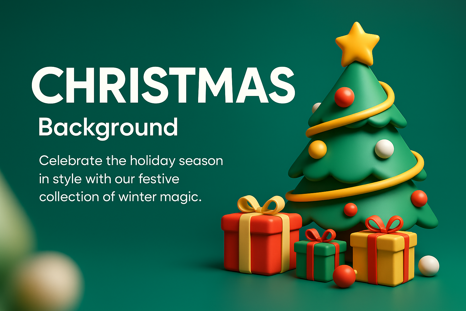 A vibrant 3D Christmas scene featuring a decorated tree and colorful gift boxes. The background is a smooth gradient, setting a festive mood.