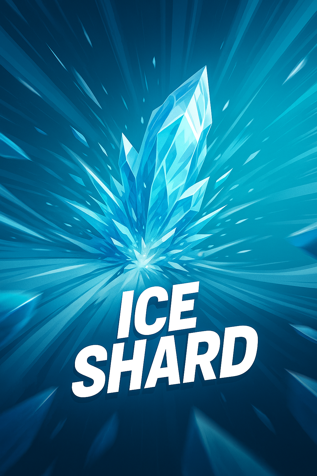 /Collection: /by davooda/Type: PNG/A visually striking illustration of an ice shard, depicted with dynamic lines radiating from the center. The text 'ICE SHARD' is prominently featured in bold, creating an engaging focal point against a smooth gradient background.