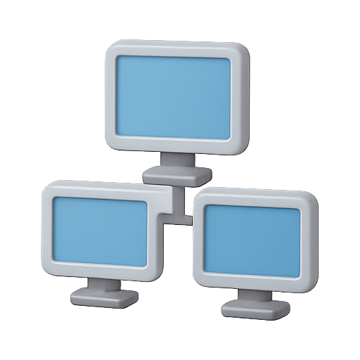 A modern, minimalist illustration featuring three stylized computer monitors arranged in a dynamic layout. Ideal for tech-related graphics and digital design projects.