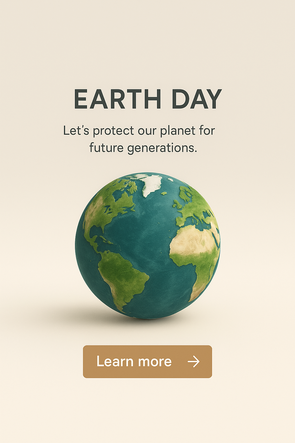 /Collection: /by davooda/Type: PNG/A detailed 3D illustration of planet Earth, showcasing its green continents on a light gradient background. The scene emphasizes sustainability with a clear call to action.
