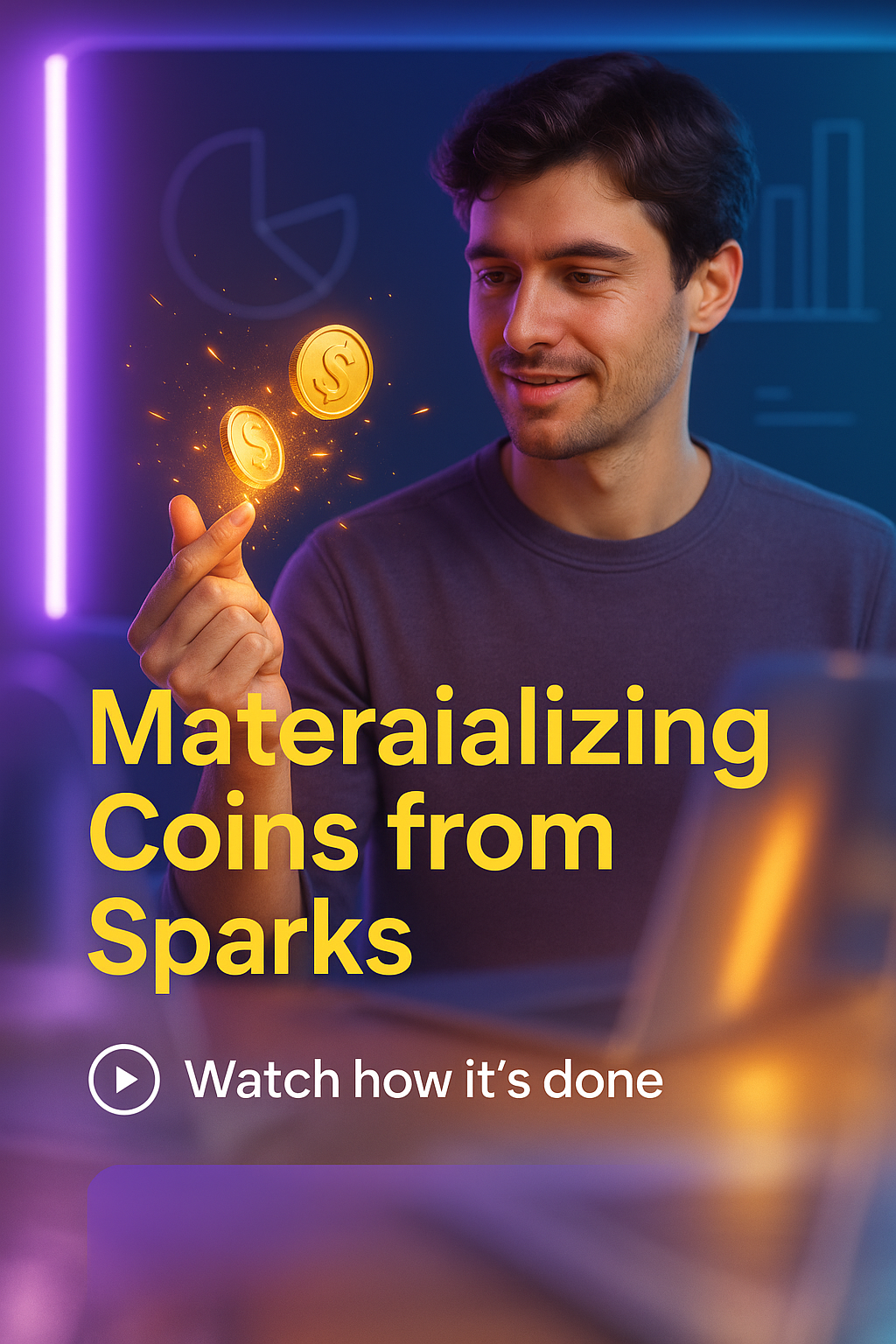 /Collection: /by davooda/Type: PNG/A visually captivating image featuring a young man creating coins from sparks, ideal for promotional or educational content showcasing creativity and innovation.