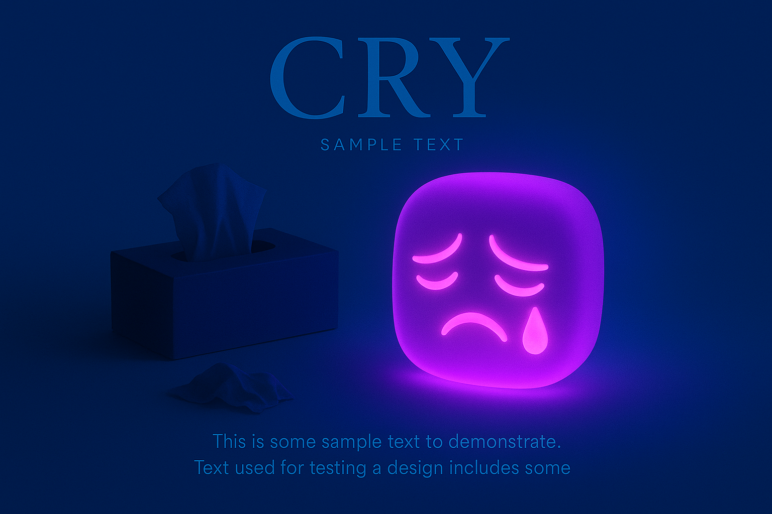 /Collection: /by davooda/Type: PNG/A captivating scene featuring a glowing, sad face object surrounded by soft blue and violet hues, set against a solid blue background. Tissue box adds depth to the composition.