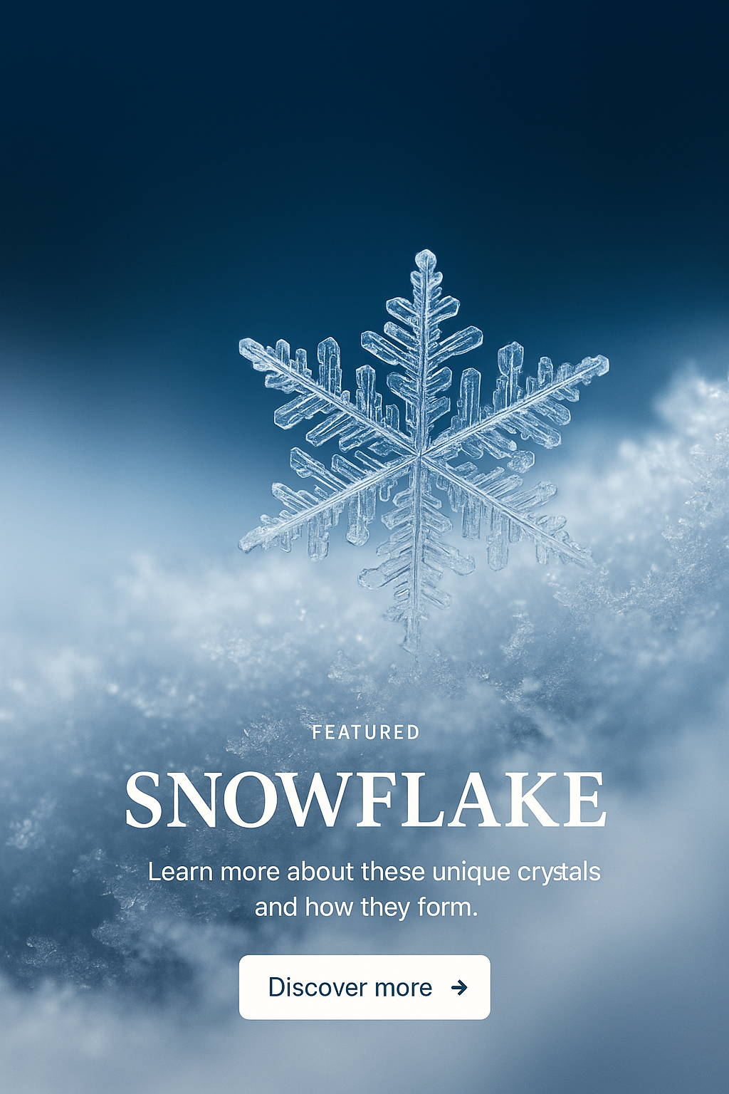 /Collection: /by davooda/Type: PNG/A beautifully detailed snowflake set against a gradient background, featuring modern text elements that invite viewers to learn more about snowflakes. The design combines realism with stylish presentation.