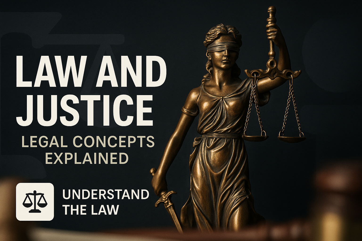 Informative Graphic on Legal Concepts Featuring Lady Justice
