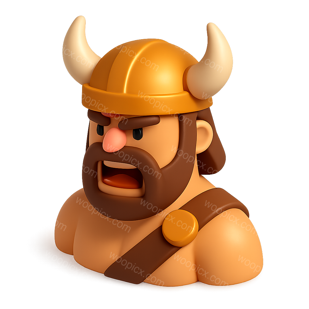 /Premium/Collection: /by davooda/Type: PNG/A vibrant 3D icon of a barbarian character, showcasing a muscular build with a horned helmet and a fierce expression. The icon features a transparent background and is presented in a three-quarter view for a dynamic look.