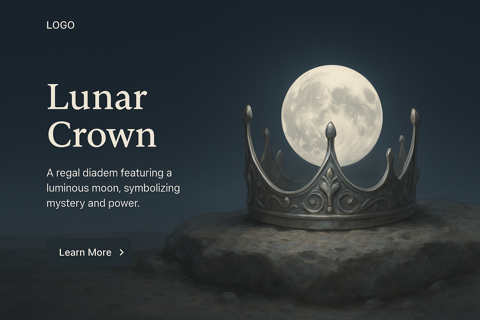 A striking illustration of a regal crown featuring a luminous moon, set against a dark gradient background, symbolizing mystery and power.