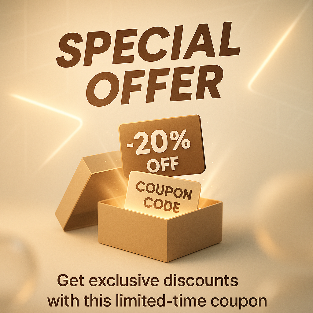 Engaging promotional graphic showcasing a special offer with a discount coupon emerging from a box, ideal for e-commerce campaigns and marketing promotions.