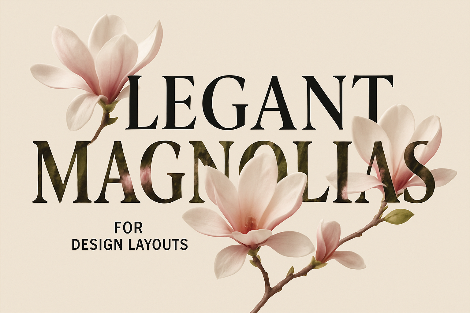 /Collection: /by davooda/Type: PNG/Stylish graphic featuring magnolia flowers with elegant typography, ideal for design layouts and creative projects. The soft color palette and floral elements add a touch of sophistication.