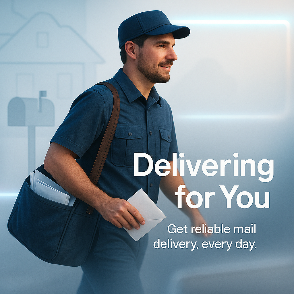 Mail Delivery Service Promotional Image Featuring Postal Worker