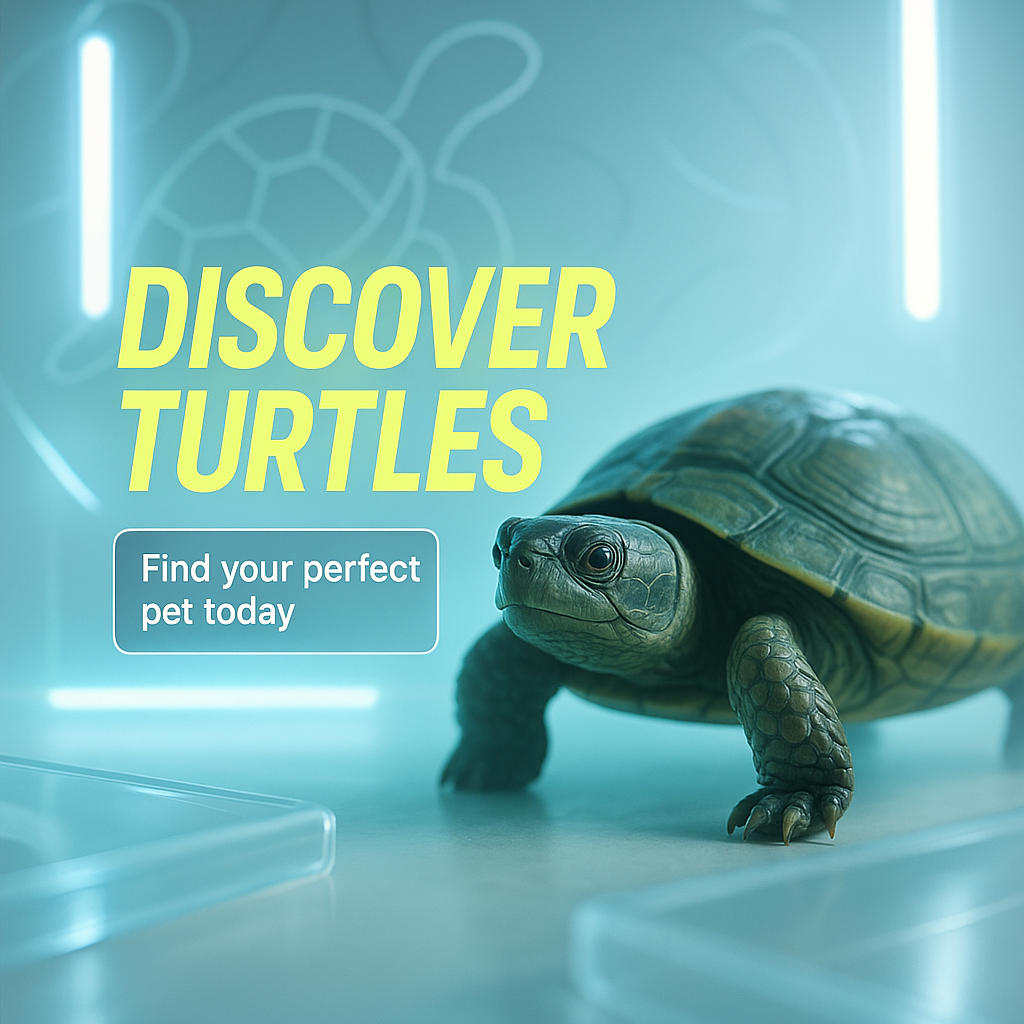 /Collection: /by davooda/Type: PNG/Engaging promotional image showcasing a turtle in a modern, vibrant setting. Ideal for pet adoption campaigns, emphasizing the theme of finding the perfect pet.