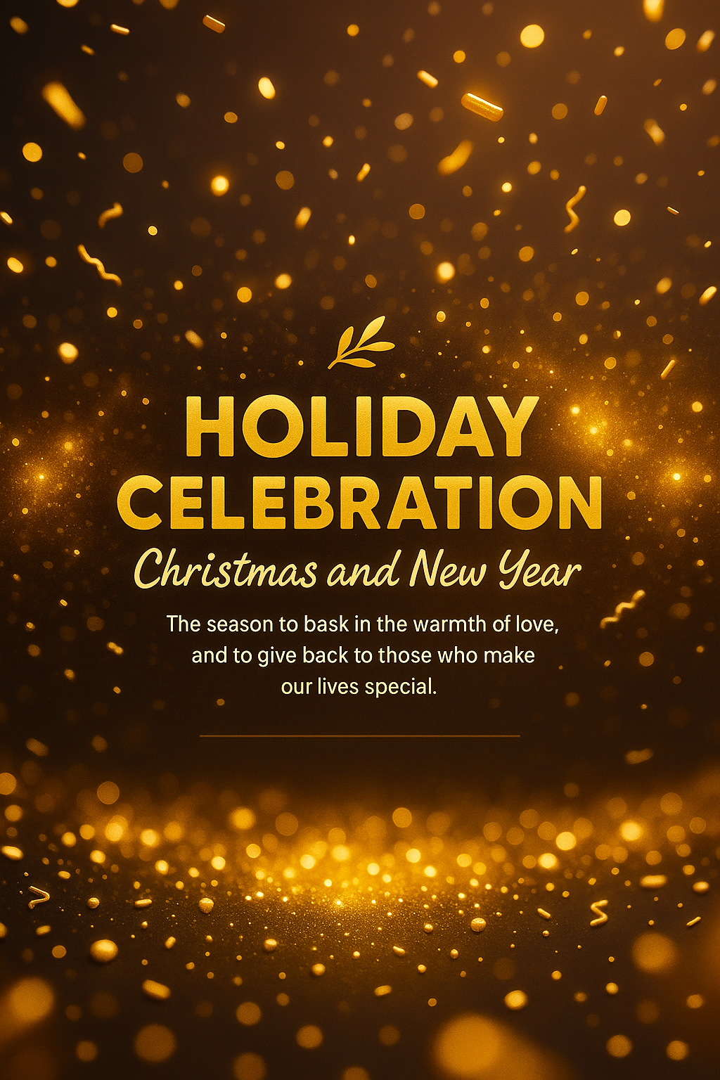 /Collection: /by davooda/Type: PNG/This image features a rich golden background with sparkling particles, perfect for Christmas and New Year celebrations. The text is clear and prominent, enhancing the festive atmosphere.
