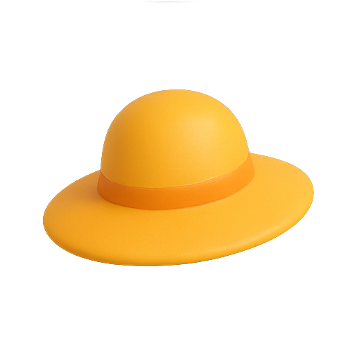 /Collection: /by davooda/Type: PNG/This image features a stylish yellow hat with a contrasting orange band, designed for fashion or summer wear. The minimalist style and bright colors make it suitable for promotional materials in retail or fashion blogs.