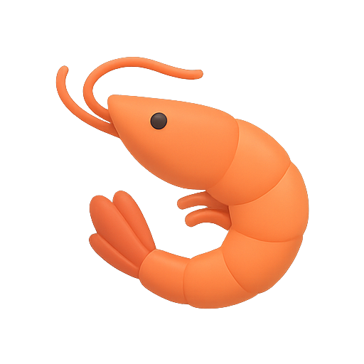 A playful, cartoon-style illustration of a shrimp, featuring a vibrant orange color and simplified shapes. Ideal for food-related graphics or children's content.
