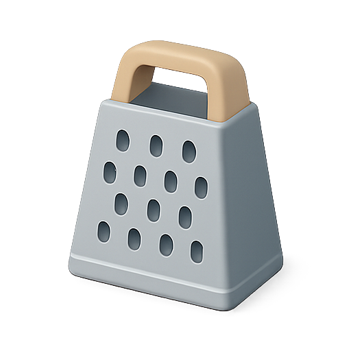 A sleek, modern kitchen grater featuring a minimalist design with a soft handle. Ideal for contemporary kitchenware displays and product showcases.