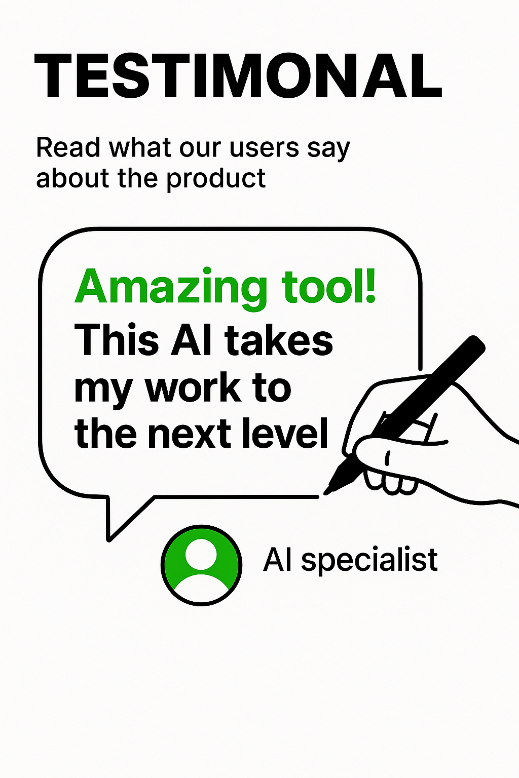 /Collection: /by davooda/Type: PNG/Engaging testimonial graphic showcasing user feedback about a product. The design features a speech bubble and a hand writing, making it ideal for promotional content.