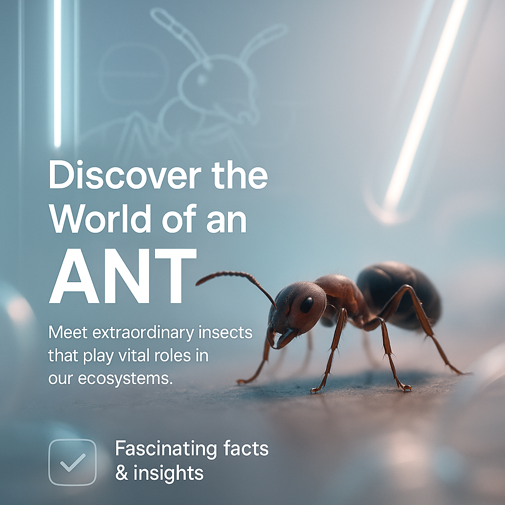 An engaging educational image highlighting ants, featuring a realistic ant model with a modern design. Ideal for nature education and ecology awareness.