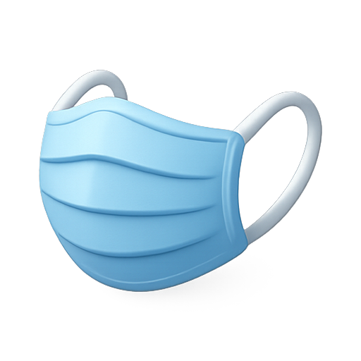 A detailed 3D rendering of a blue medical face mask, showcasing its layered design and elastic ear loops. Ideal for health-related graphics or educational content.