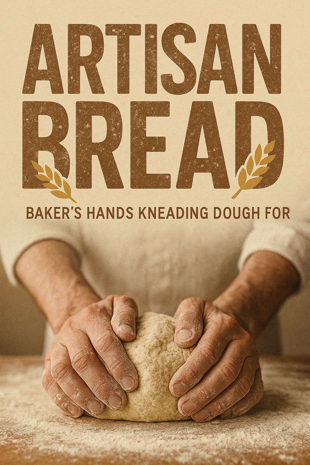 A visually appealing image showcasing a baker's hands kneading dough for artisan bread, highlighting the craftsmanship and tactile nature of baking. Ideal for culinary blogs or baking workshops.