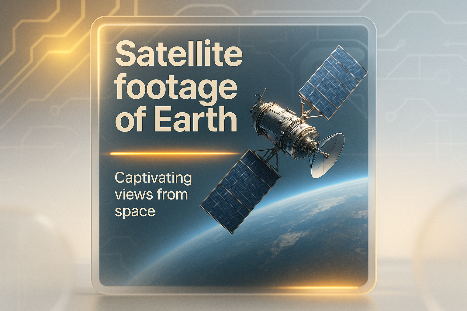 A visually striking graphic featuring a satellite capturing footage of Earth, ideal for educational content or space exploration presentations. The modern design incorporates technology elements.