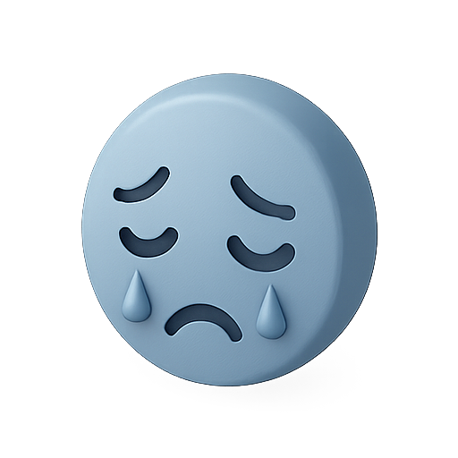 A stylized 3D representation of a sad emoji featuring a blue color scheme and tear drops. Ideal for digital communication and emotional expression in social media or messaging apps.