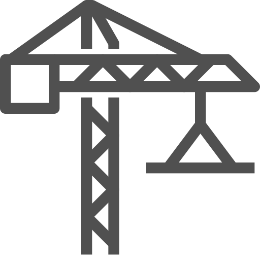 outline simple icon: building, construction, crane, engineering, heavy machinery