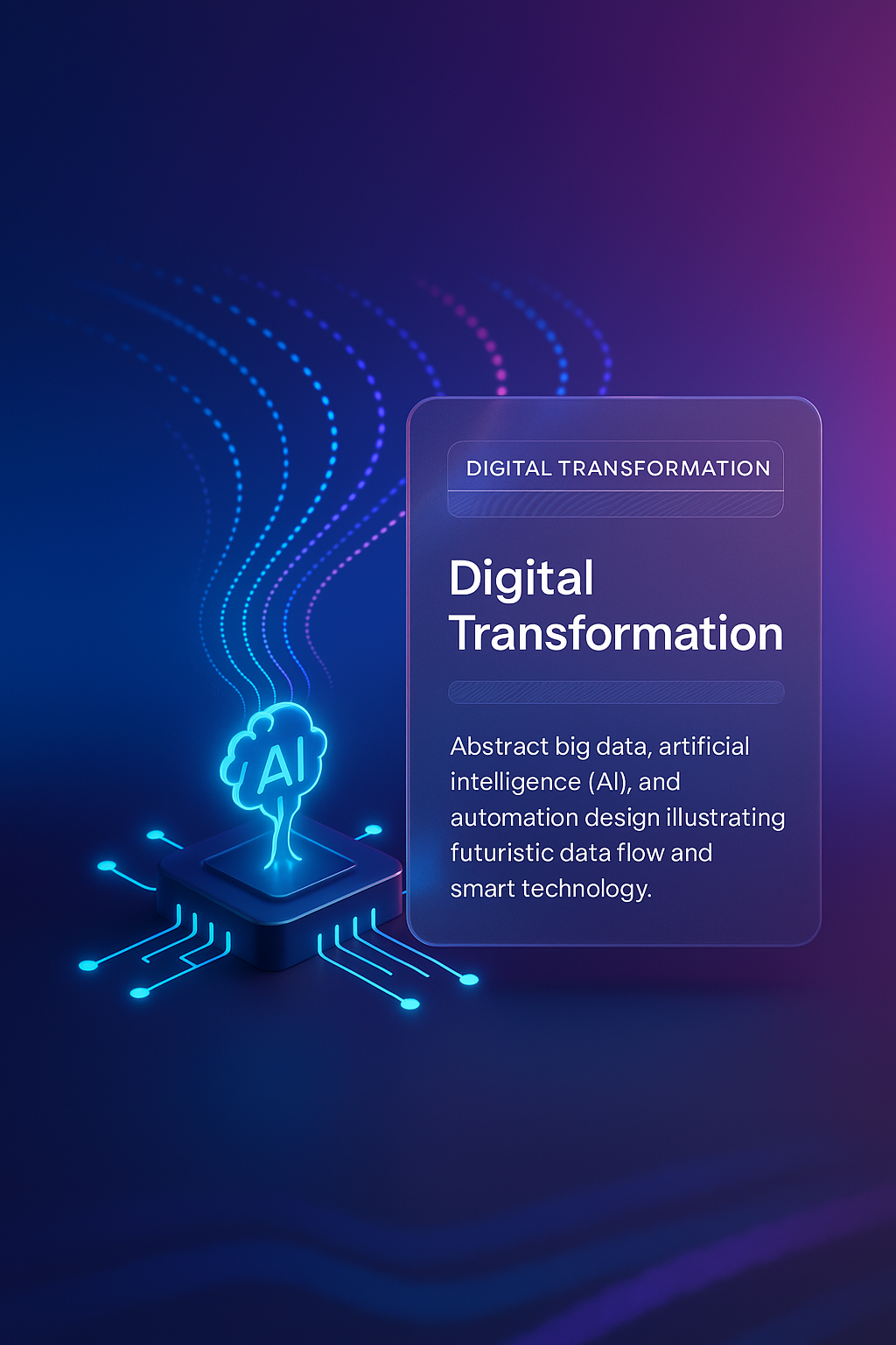 Futuristic Digital Transformation Concept with AI and Data Flow