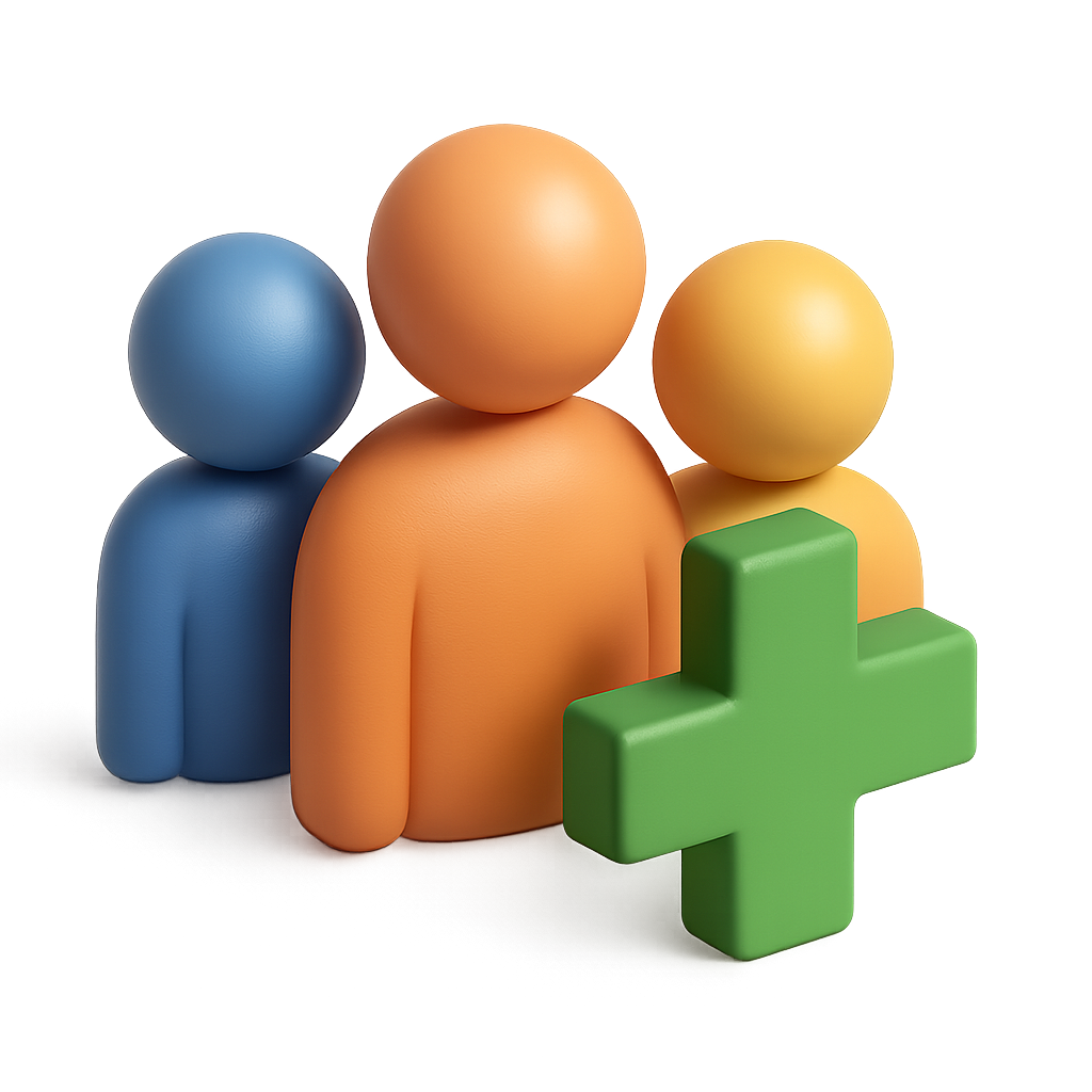 Stylized 3D Icon of People with Plus Sign