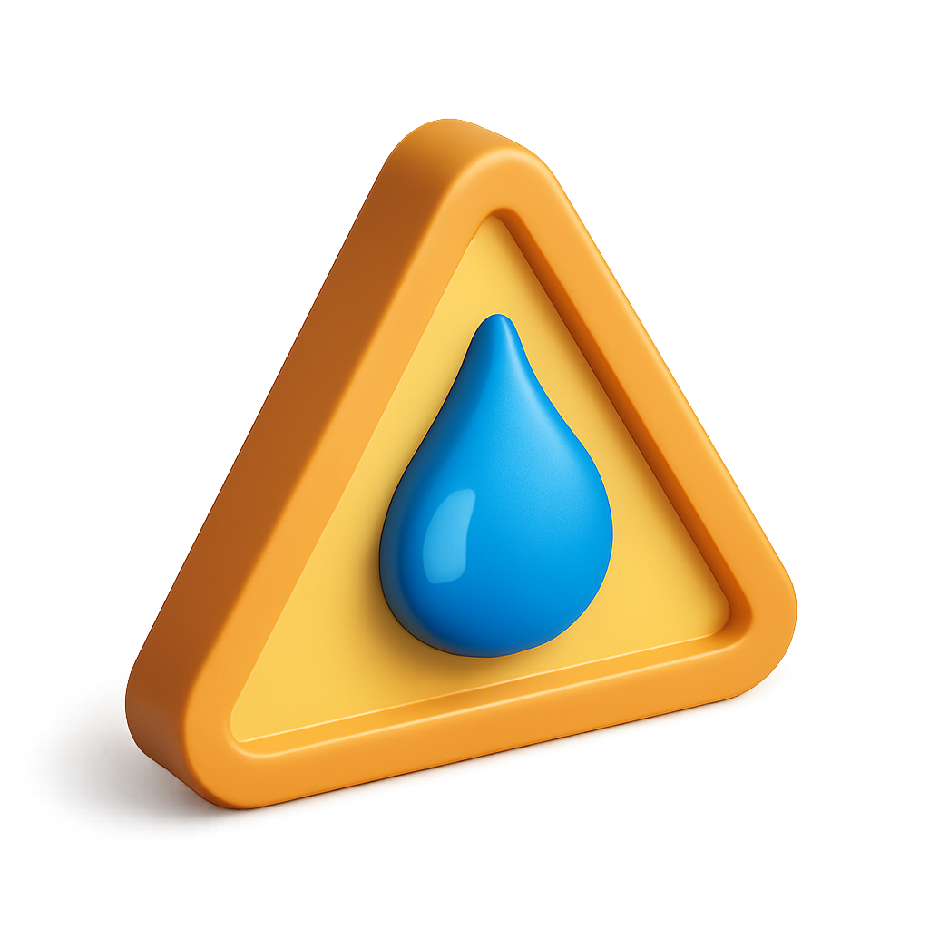 A three-dimensional triangular icon with a vibrant blue droplet centered on a yellow background. The design features a smooth, volumetric look, enhancing its visual appeal.