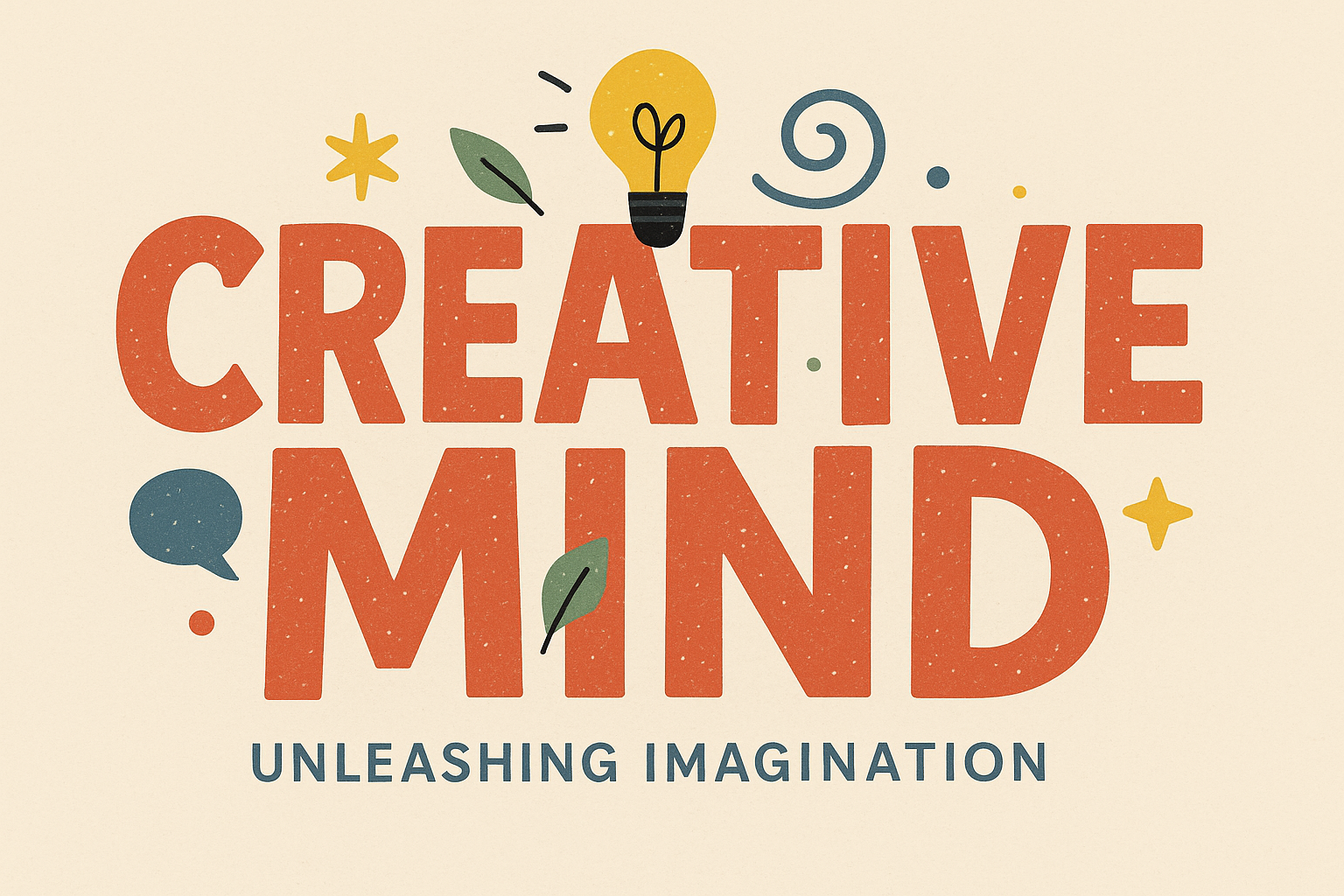 /Collection: /by davooda/Type: PNG/A vibrant and playful graphic featuring the phrase 'Creative Mind' with whimsical design elements, ideal for promoting creativity and imagination in educational or artistic contexts.