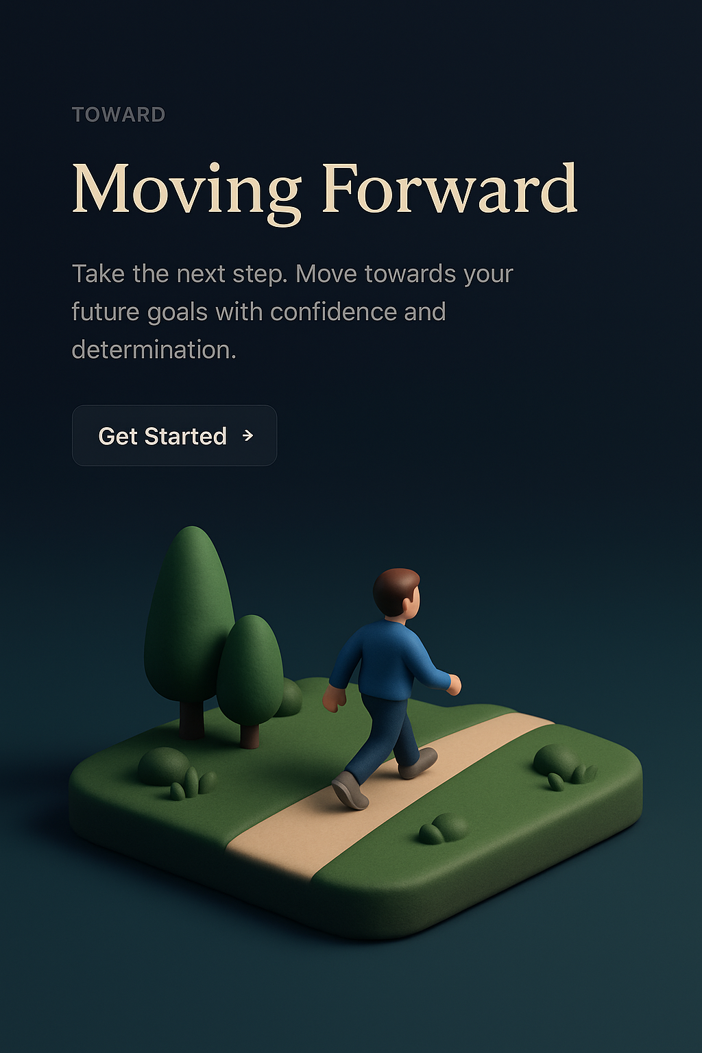 /Collection: /by davooda/Type: PNG/A visually engaging 3D scene featuring a small figure walking on a path surrounded by simple greenery against a dark background, conveying a sense of movement and purpose.