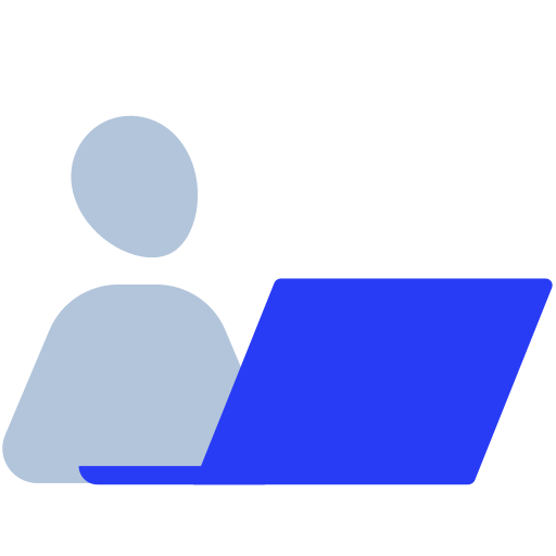 polish-blue simple icon: computer, user, person, laptop, work